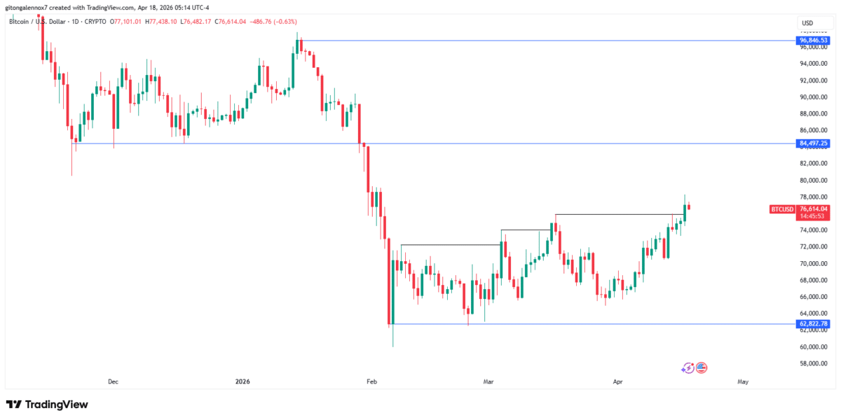 There is an anticipation that the price will trade to $84K before another significant correction. Breaching this level would put $96K in sight.